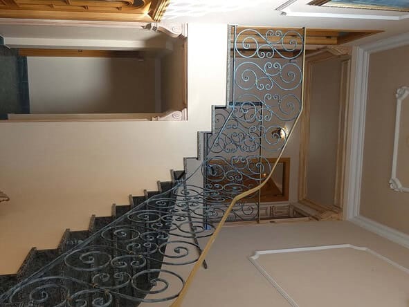 Le portail d’entrée mène à un garage intégral, qui permet de garer les véhicules en toute sécurité. L’escalier orné du hall d’entrée donne le ton de l’intérieur élégant.