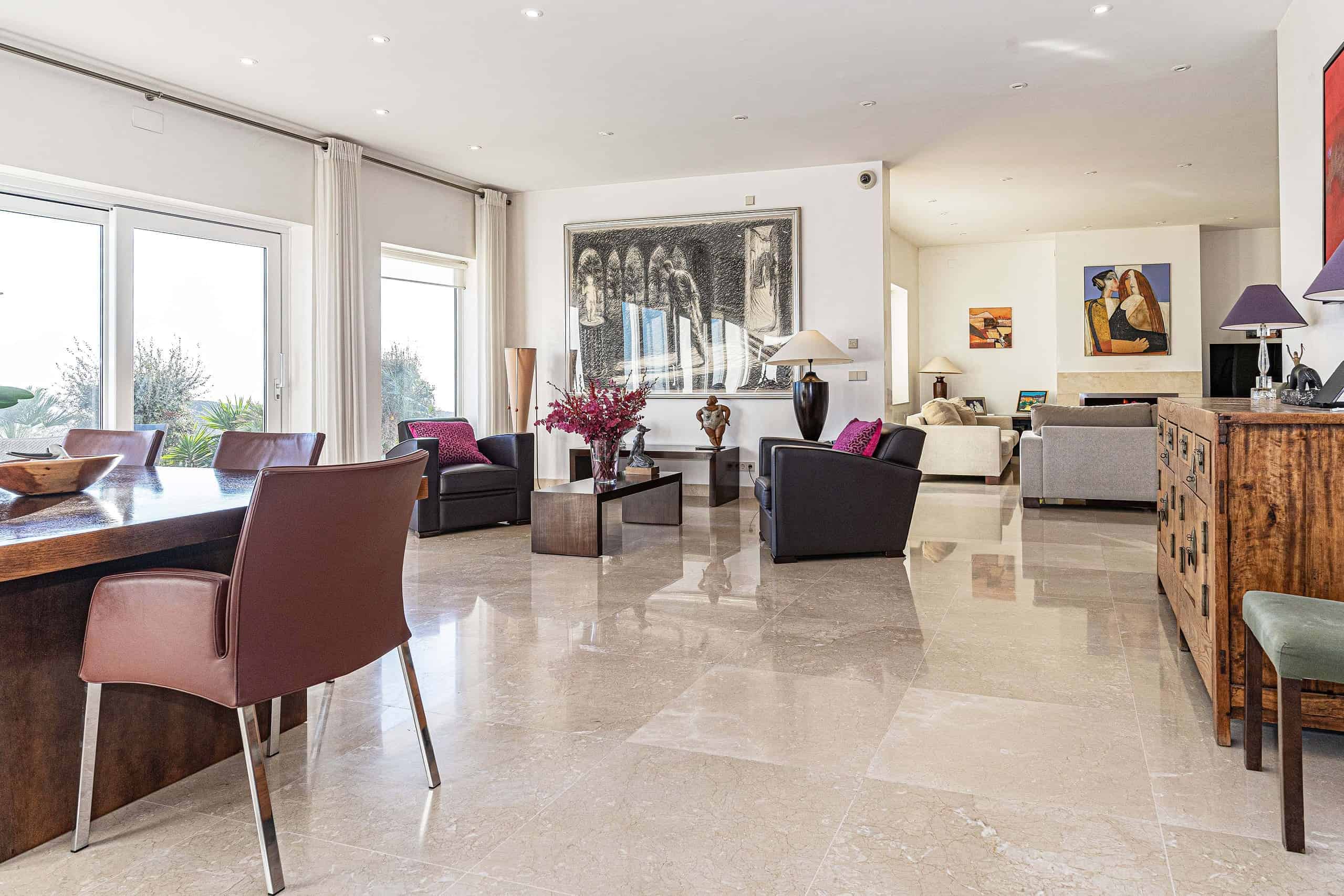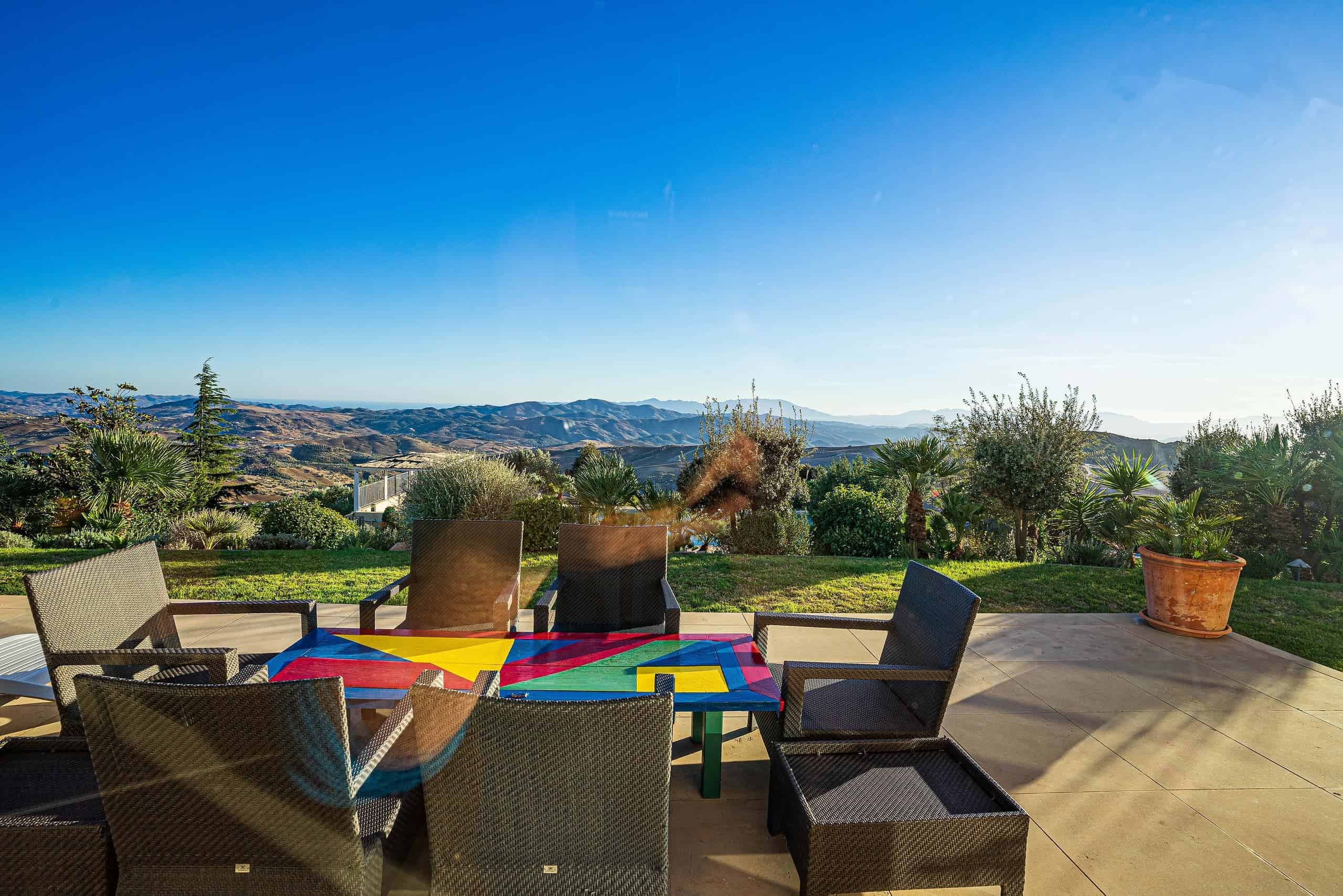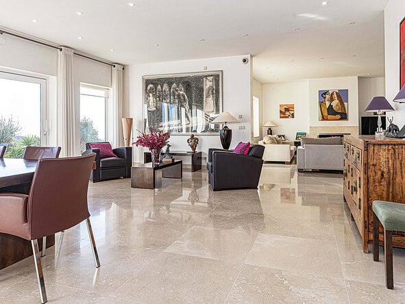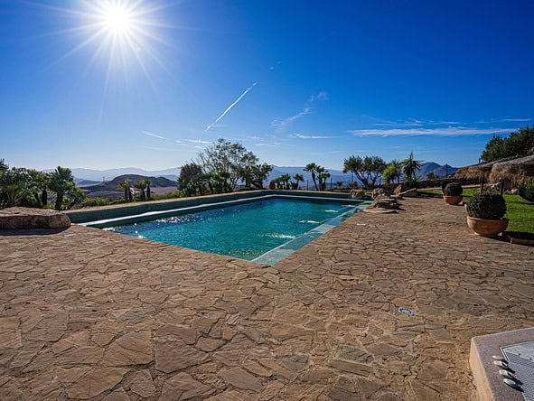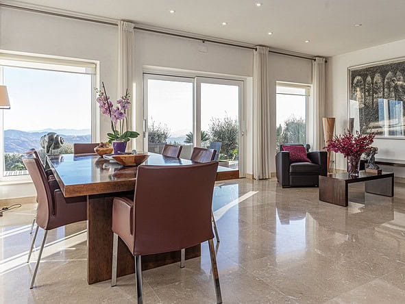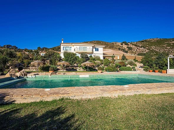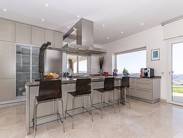 This stylish and modern property was built in 2011 to a high specification and is set in an elevated position within a fully fenced plot measuring 38,000m2. The gardens boasts an orchard and olive grove.