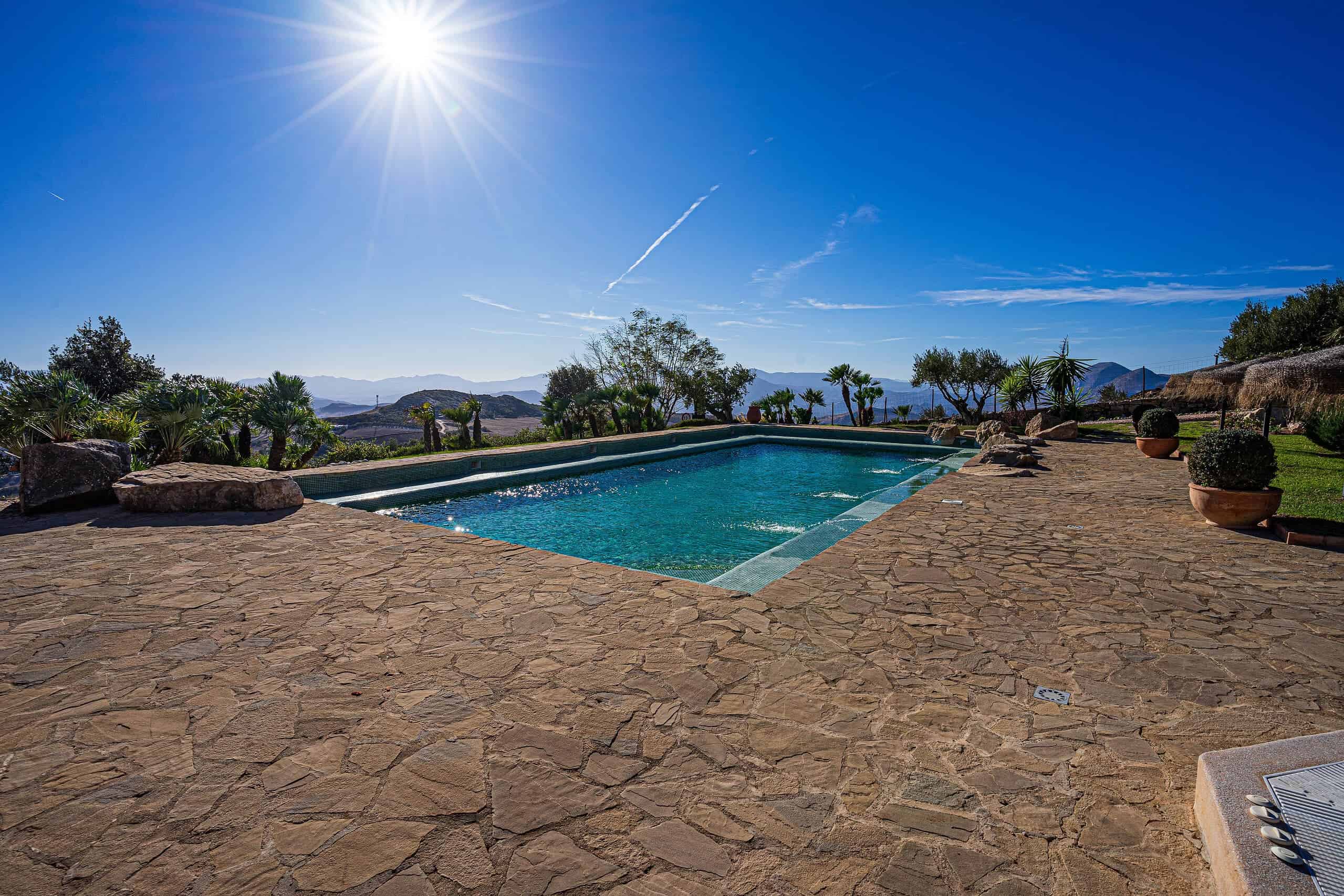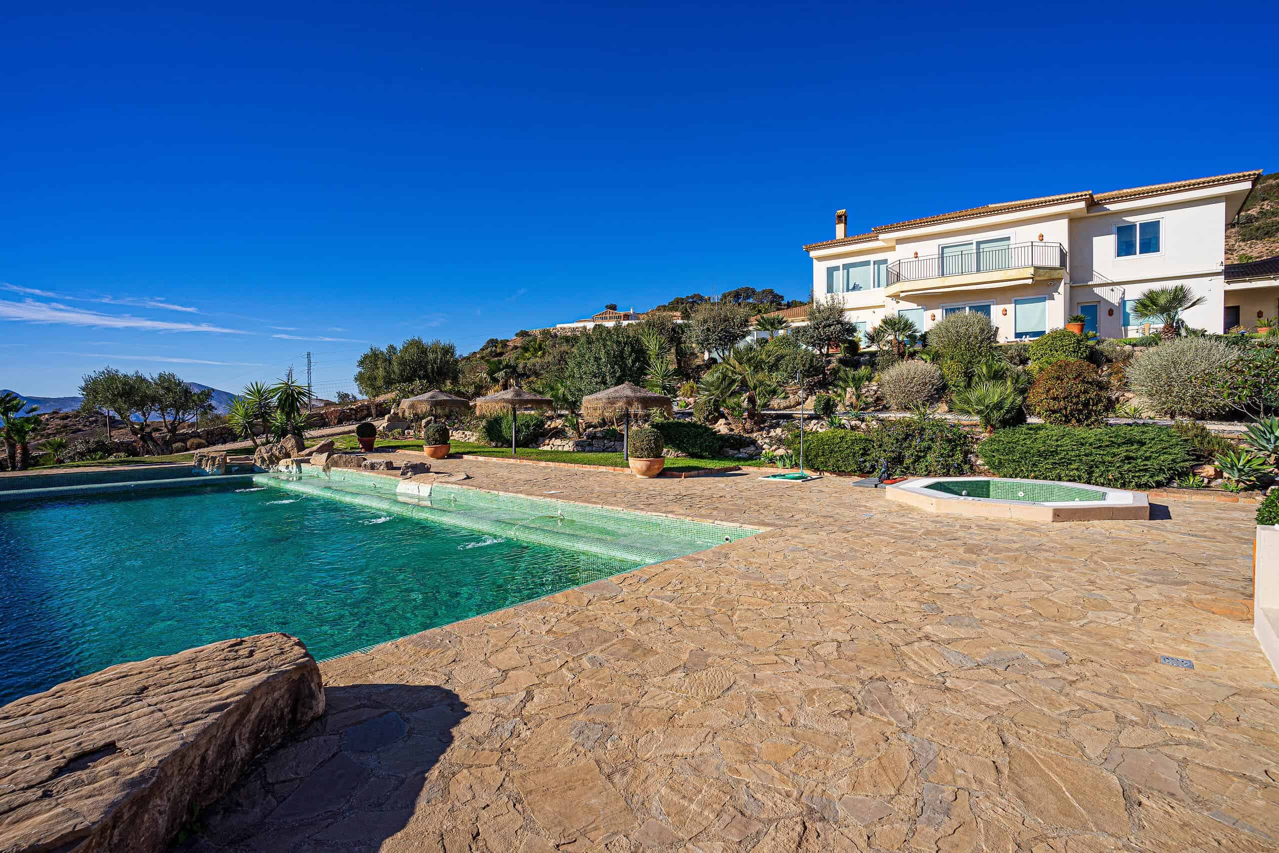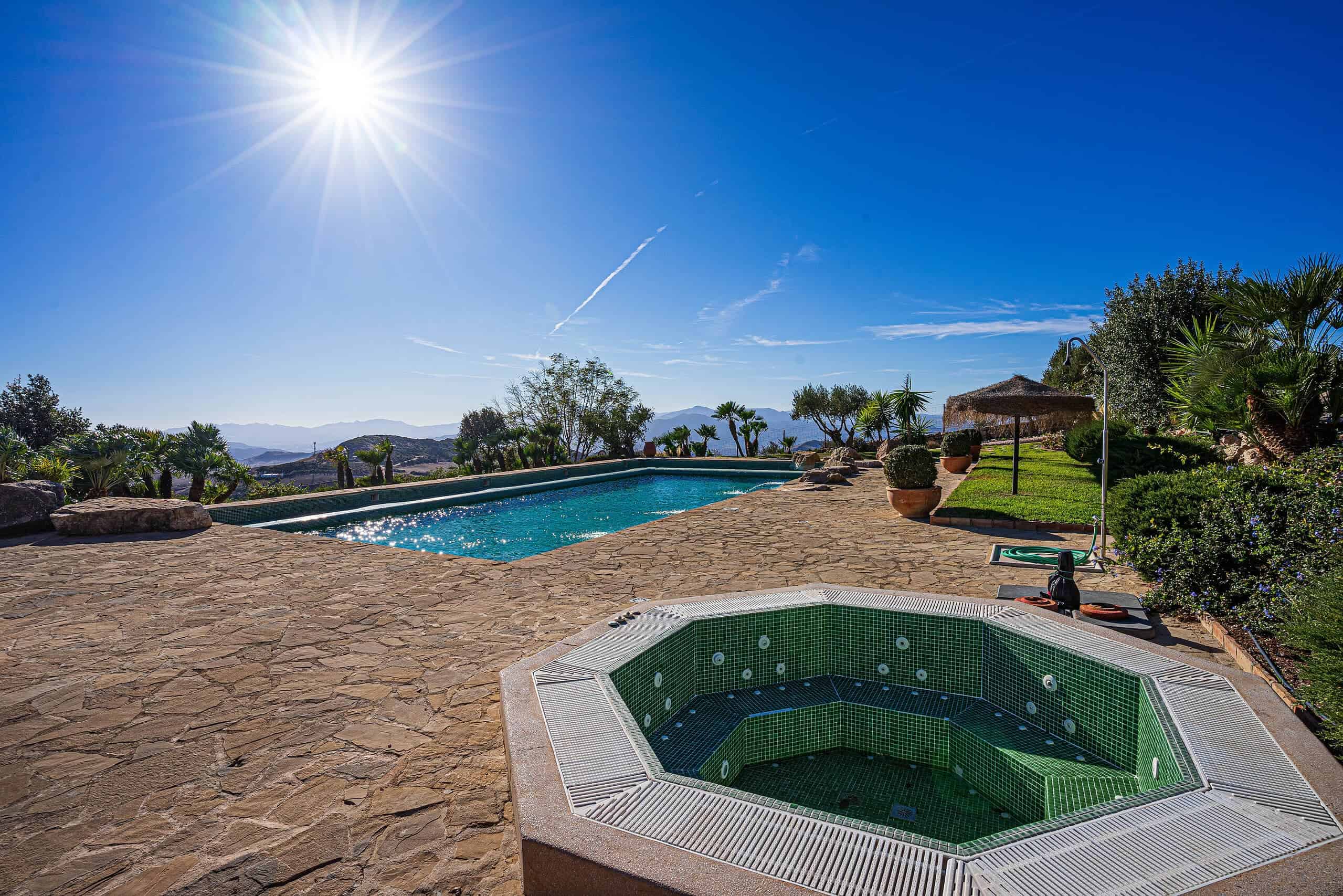 The pool area features a solar heated 15m x 7m swimming pool with ECO cleaning system, a poolside bathroom, an inbuilt Jacuzzi plus a shaded relaxation area.